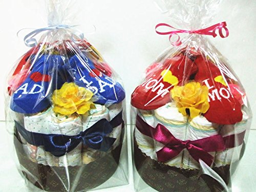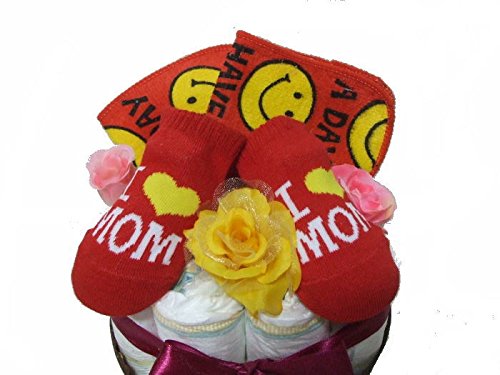 おむつケーキ女の子出産祝いセット♪おむつケーキ『アイラブMOMスマイル』S赤ちゃんギフト
