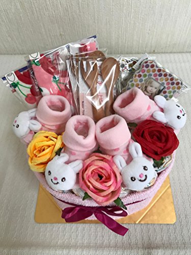 おむつケーキ 女の子 双子ちゃん 出産祝い♪【ハッピーうさぎ】 オムツ★パンパース・