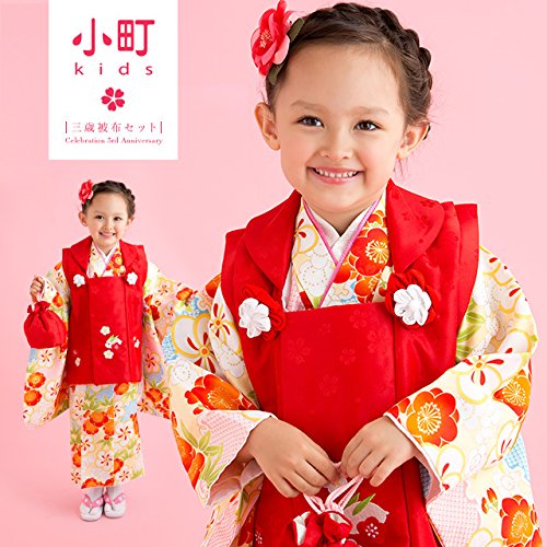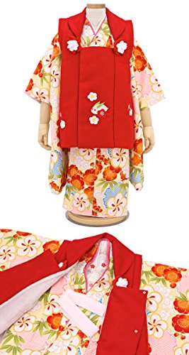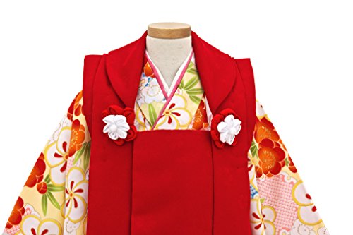 三歳被布着物セット 小町kids 赤被布×黄色着物 竹梅 雪輪 花