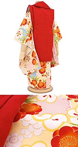 - [色]被布コート 赤 着物 黄色