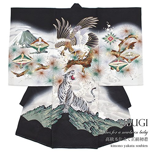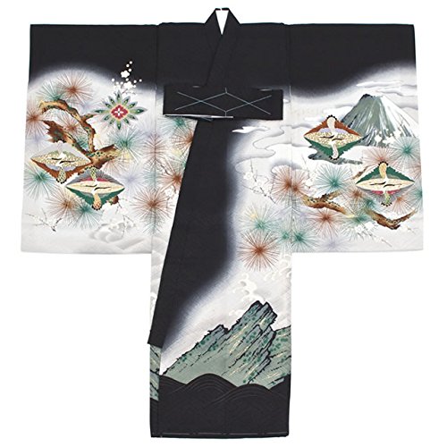 初着 黒 ブラック 鷹 虎 鶴 松 山 波 正絹 仕立て上がり 紋入れ