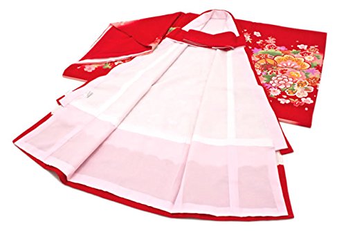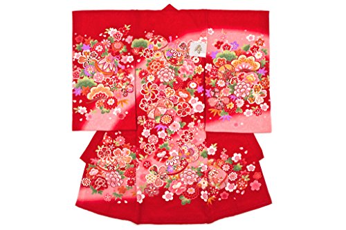 初着 赤 レッド ピンク 牡丹 梅 花 鞠 刺繍 ラメ ぼかし