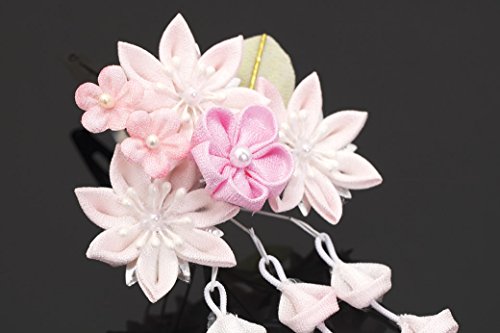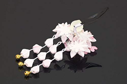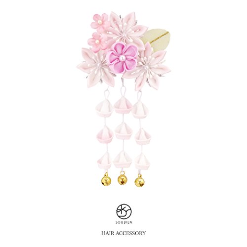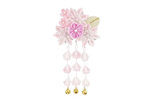 髪飾り つまみ細工 ベビーピンク 白 桜 梅 花 ぼかし 鈴 藤下がり ぶら飾り スリーピン パッチン留め 髪留め 3才 7才 七五三向き キッズ 子供