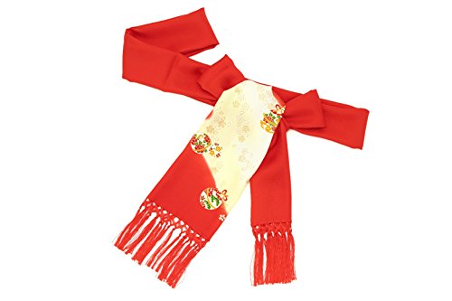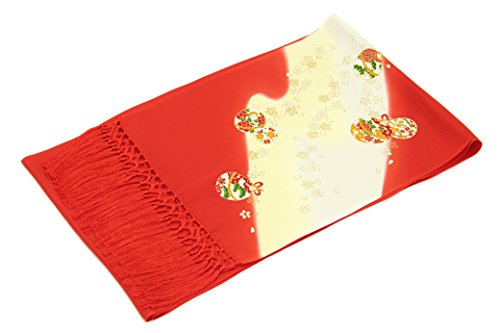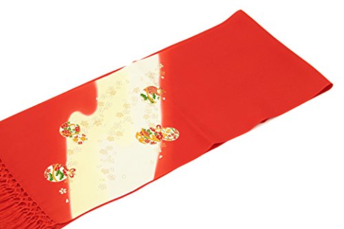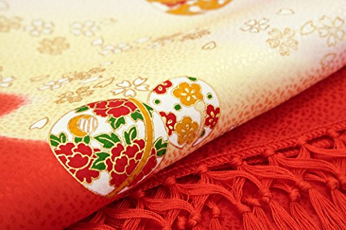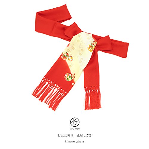 志古貴 銀朱色 レッド 薄黄色 鈴 すず 桜 さくら ぼかし 友禅染 正絹 しごき 七五三 七才 女の子 盛装 和装小物 子供用