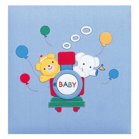 【お子様の誕生記念に刺繍アルバムを作成致します/ア-OLB-613/N】フエルアルバム/ア-OLB-613 チューチュートレイン ブルー Lサイズ/ア-OLB-613/N-B
