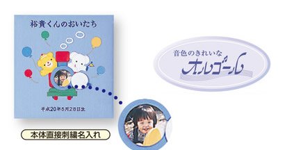 - 付属:育児記録6頁、タイトルカード付(誕生クマ/A)、オルゴール付(曲名:スモールワールド) 化粧函入