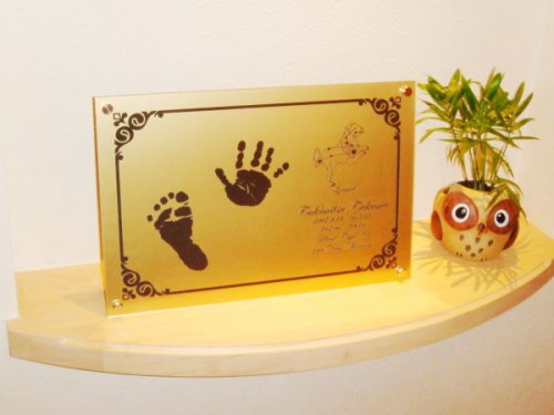 生後間もない頃の可愛いお子様の「手・足」を形として残しませんか!産声を上げたときの感動がよみがえります。手相やシワ等の細かな部分まで美しく表現できます。お部屋のインテリアとしても素敵です。アクリル製です。赤ちゃんの写真も一緒に飾っていただけます。両手・両足のうち、お好きな2つをお選びください。手形足型の他に、赤ちゃんのお名前・星座絵・生年月日・○ヶ月記念 を彫刻いたします。書体は、5種類の中からお選びいただけます。● ご注文頂きましたら、お申込書とお子様の手型・足型を取って頂く為の採取キット(専用発色紙×3、発色液パック×2)を送らせて頂きます。※お支払い方法が商品代引の場合は、採取キット等の送付時のお支払いとなります。● 赤ちゃんのお名前など詳細につきましては「お申込書」にお書きくださいませ。● そちらを記入の上、返信用封筒にて(株)北斗園までご返送して下さい。