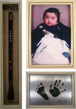 誕生記念筆と手形・足型を一緒に飾りました。誕生記念筆は鳳凰の蒔絵を施した軸に仕上げ、手形足型は手相やシワ等の細かな部分まで美しく表現してます。お部屋のインテリアとしても素敵です。アイボリ特製額入りです。筆の軸には赤ちゃんのお名前・生年月日が彫刻されます。手形足型は両手・両足のうち、お好きな2つをお選びください。手形足型の他に型取記念 を彫刻いたします。● ご注文頂きましたら、お申込書とお子様の手型・足型を取って頂く為の採取キット(専用発色紙×1、発色液パック×1)を送らせて頂きます。※お支払い方法が商品代引の場合は、採取キット等の送付時のお支払いとなります。● 赤ちゃんのお名前など詳細につきましては「お申込書」にお書きくださいませ。● そちらを記入の上、返信用封筒にて髪の毛とご一緒に(株)北斗園までご返送して下さい。