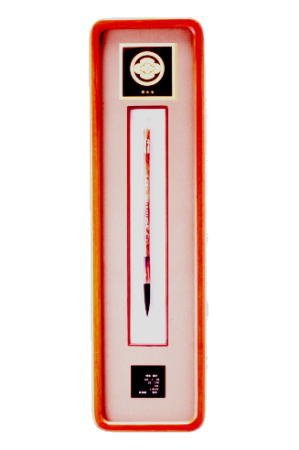 伝統工芸士作 赤ちゃん筆(胎毛筆・誕生記念筆)慶コース 支那軸水牛ダルマ軸(額・家紋付き)/ta-27
