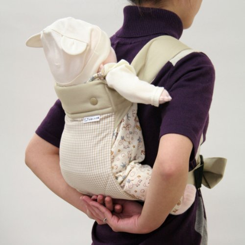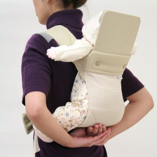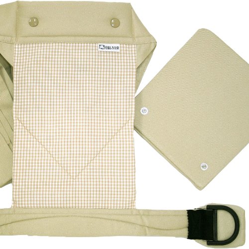 北極しろくま堂 昔ながらのおんぶひも 背当て頭あてつき ライトベージュ/ギンガム 本体:綿100% ON-46-X-3080