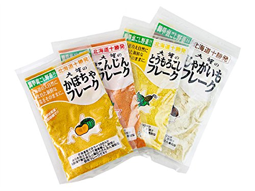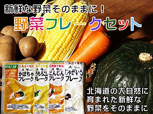 野菜フレークセット お徳用4種セット(人参・南瓜・じゃが芋・玉蜀黍)無添加・無着色!北海道産 !お料理・お菓子づくり・離乳食・介護食(ベビーフード)常備食にもお役立ち! 大望のフレーク(にんじん・かぼちゃ・ジャガイモ・とうもろこし)