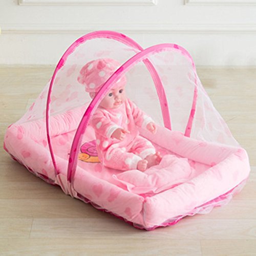 [千楽] 折りたたみミニベッド 虫よけ ベビーモスキートネット 蚊帳 出産祝い Pink