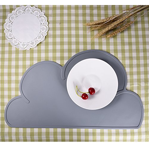 お食事マット ランチョンマット テーブルマット シリコン製 Baby 子供給食用具 可愛い曇り形 撥水 防汚 丸洗いOK (L:深グレー)