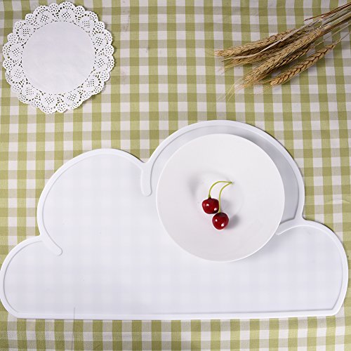 お食事マット ランチョンマット テーブルマット シリコン製 Baby 子供給食用具 可愛い曇り形 撥水 防汚 丸洗いOK (A: 白)