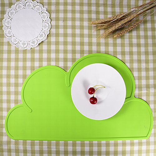 お食事マット ランチョンマット テーブルマット シリコン製 Baby 子供給食用具 可愛い曇り形 撥水 防汚 丸洗いOK (D:緑)