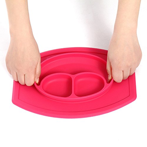 お手入れしやすく持ち運びもできるお食事用シリコンマット、裏面の吸盤と特殊加工でテーブルに密着します