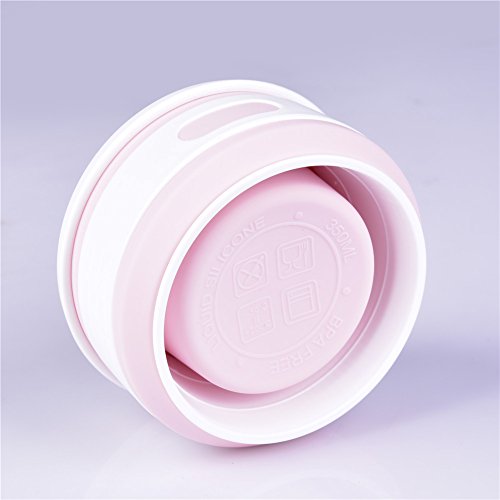 卓仕朗 水筒 シリコン製 折り畳み式 携帯便利 蓋付き 折りたたみカップ 子供 大人 アウトドア/スポーツ/出張/運動会適用 350ml (ピンク)