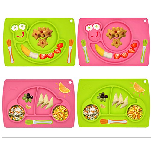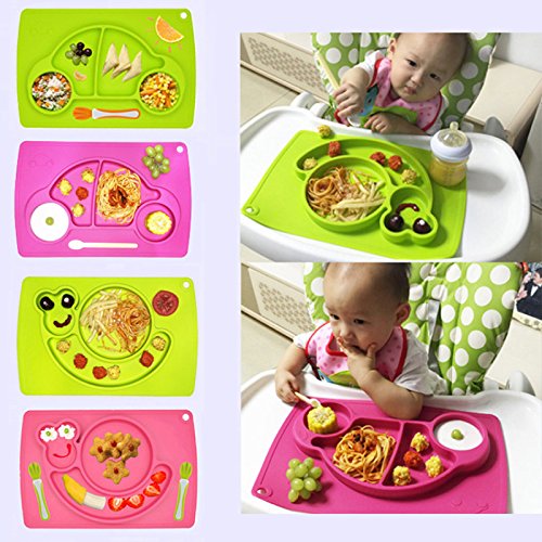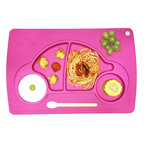 プレート・ボウル 食事マット ランチョンマット 仕切りマット ボウル ベビー用食器 卓仕朗 baby ランチプレート シリコン ベビー 離乳食 調理器具 給食用品 可愛い 北欧 幼稚園 子供用 滑り止め (カー, ピンク)