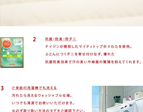 - 【2】抗菌・防臭・防ダニ加工―テイジンが開発したマイティトップ2わたを使用。【3】ご家庭の洗濯機でも洗えるウォッシャブル仕様。