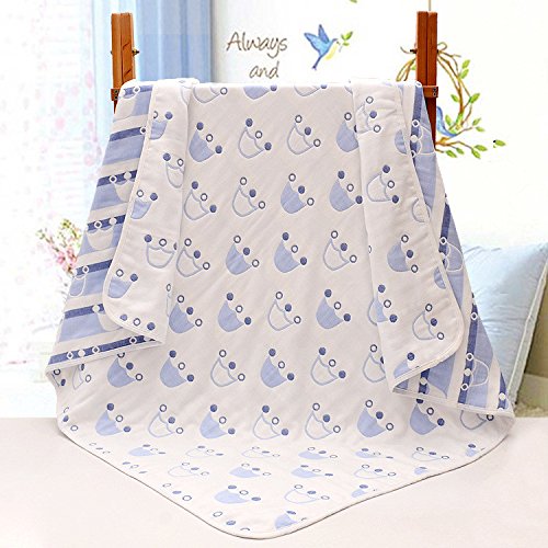 (PINK17°)ベビータオルケット 掛け布団 赤ちゃんにやさしい コットン100%6重ガーゼ生地 3色144 (ブルー)