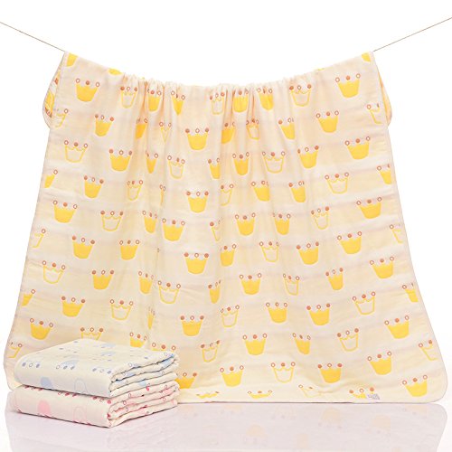(PINK17°)ベビータオルケット 掛け布団 赤ちゃんにやさしい コットン100%6重ガーゼ生地 3色144 (イエロー)