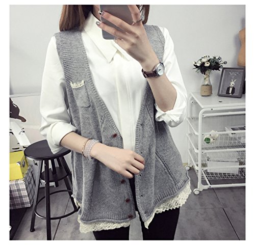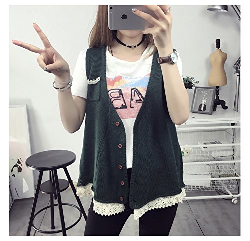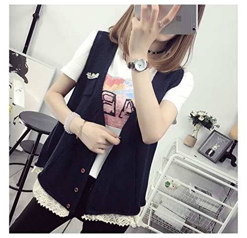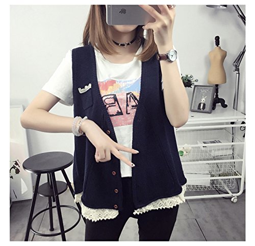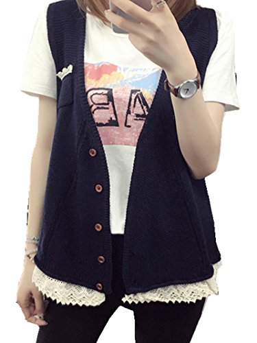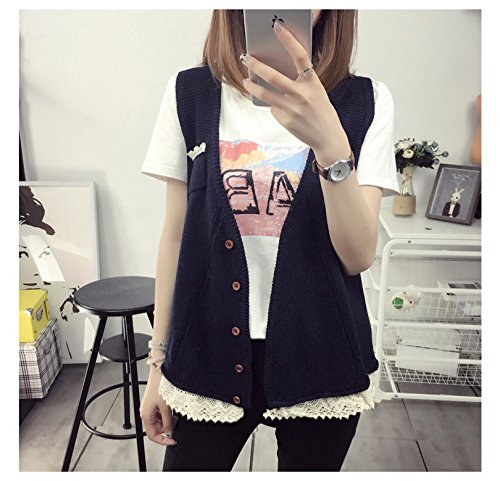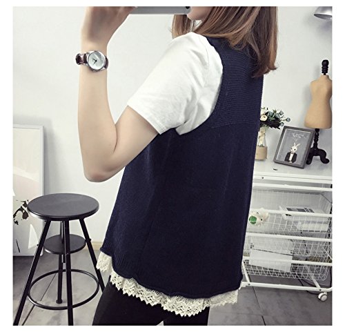 (PINK17°)カーディガン マタニティ ニットベスト 可愛いレース付 ジャケット アウター 羽織 ノースリーブ 138 (ネイビーブルー)