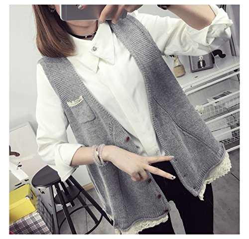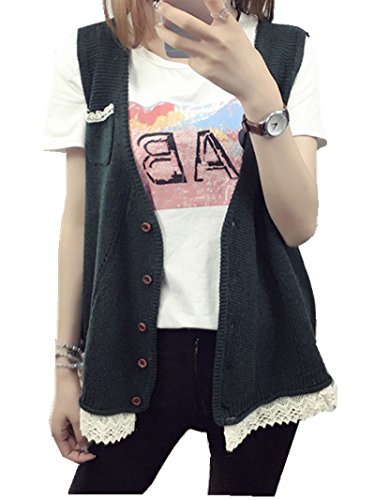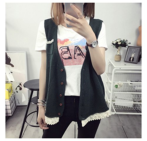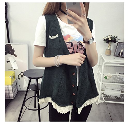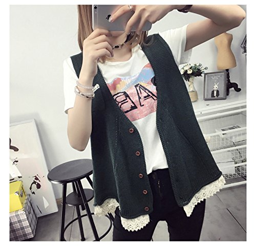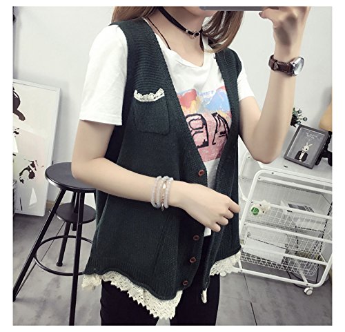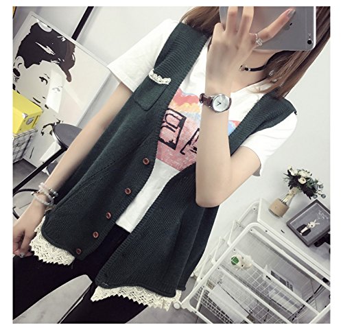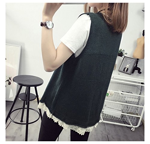 (PINK17°)カーディガン マタニティ ニットベスト 可愛いレース付 ジャケット アウター 羽織 ノースリーブ 138 (ダークグリーン)