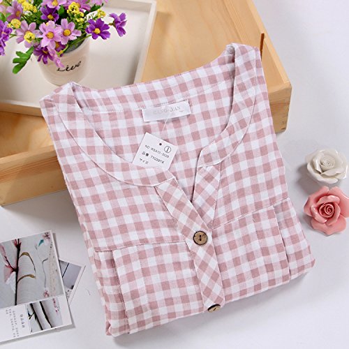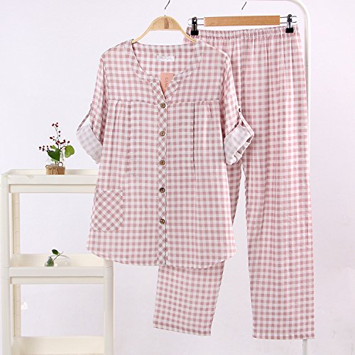 (Pink17°)マタニティナイトウエア上下セット パジャマ ルームウエア 授乳口付き 可愛い花柄 肌に優しいガーゼ生地 産前産後145 (M, チェック柄パープル)