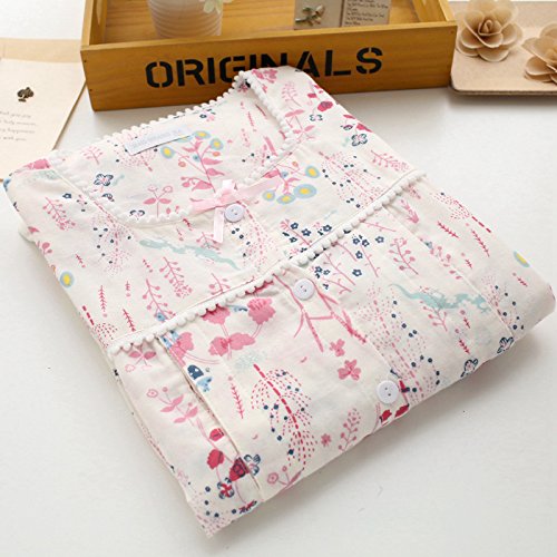 (Pink17°)マタニティナイトウエア上下セット パジャマ ルームウエア 授乳口付き 可愛い花柄 肌に優しいガーゼ生地 産前産後145 (XL, 花柄)