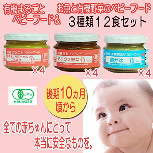 - 有機JAS認定食品。後期10か月頃からの有機まるごとベビーフードシリーズ3種類12食セット(離乳食)。