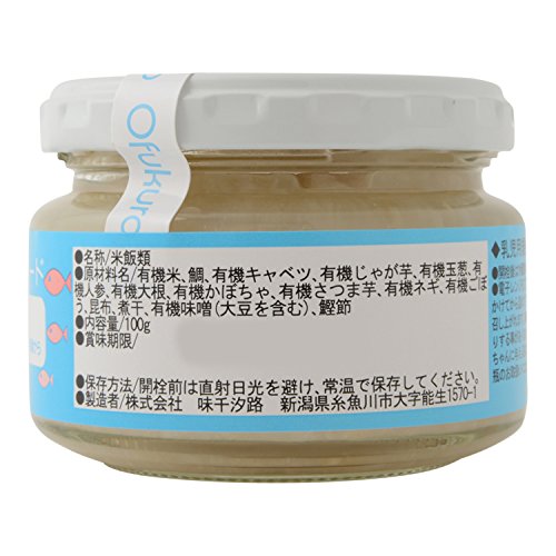 - 原材料:有機米、鯛、有機キャベツ、有機じゃがいも、有機玉ねぎ、有機人参、有機大根、有機かぼちゃ、有機さつまいも、有機ネギ、有機ごぼう、昆布、煮干、有機味噌(大豆含む)、鰹節
