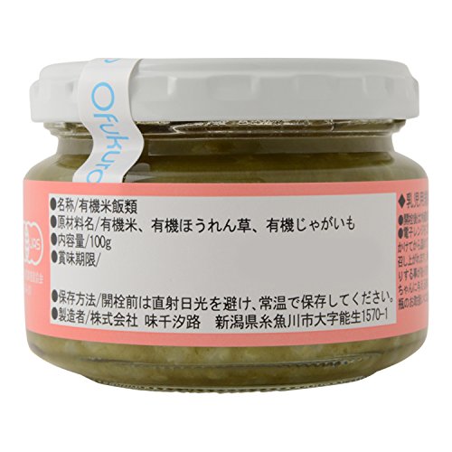 - 原材料:有機米、有機ほうれん草、有機じゃがいも