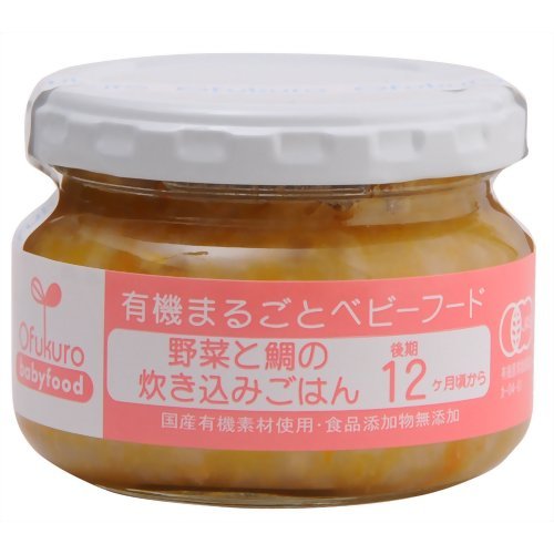 「有機まるごとベビーフード 野菜と鯛の炊き込みごはん 100g 12ヶ月頃から」は、国産有機素材を使用したベビーフードです。食品添加物は使用しておりません。