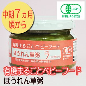 - 「有機米つぶつぶおかゆ」をほうれん草とじゃがいもを合わせ、煮込んだお粥です。コシヒカリの旨みと野菜の甘みがギュっと詰まっています。