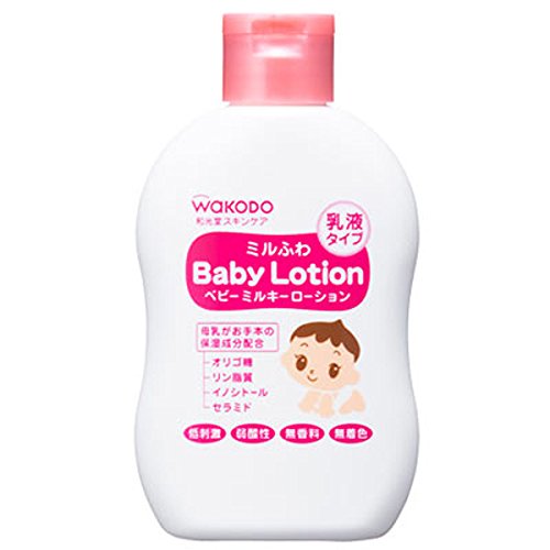 「ミルふわ ベビーミルキーローション 乳液タイプ 150ml」は、母乳にも含まれ、肌への保湿効果がある成分をお手本に、オリゴ糖・リン脂質・イノシトール(保湿成分)を配合したベビーローションです。保水バリア成分・セラミド(保湿成分)や、ベタイン(アミノ酸系保湿成分)、スクワラン(うるおい成分)も配合しています。全身ケアにもベタつかず、しっとりのびます。顔、からだ用。 低刺激・弱酸性・無香料・無着色・パラベン無添加・ノンアルコール・無鉱物油。乳由来成分は使用しておりません。 使用方法 適量を手に取り、顔、からだにのばしてください。 入浴後や外出前に 配合成分 水、BG、グリセリン、スクワラン、メドウフォーム油、ステアリン酸、ステアリン酸グリセリル(SE)、ラフィノース、水添レシチン、イノシトール、セラミド3、フィトステロールズ、ベタイン、アルギニン、グリチルリチン酸2K、トコフェロール、(アクリレーツ/アクリル酸アルキル(C10-30))クロスポリマー、キサンタンガム、EDTA-2Na、エチルヘキシルグリセリン、1.2-ヘキサンジオール、フェノキシエタノール ご注意 傷やはれもの、湿しん等、異常のある部位には使用しないでください。 使用中、または使用後赤み、はれ、かゆみ、刺激等の異常があらわれた時は使用をやめ、皮膚科専門医等にご相談されることをおすすめします。 目に入った時はすぐに洗い流してください。 極端に高温や低温の場所、直射日光の当たる場所に保管しないでください。 乳幼児の手の届かない所に保管してください。 内容量:150ml販売元:和光堂 JANコード:4987244174147