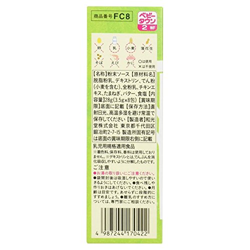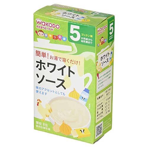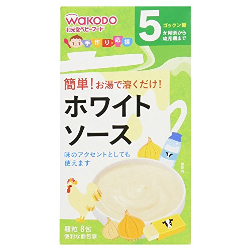 ●【商品説明】●「手作り応援 ホワイトソース 8包 5ヶ月頃から」は、なめらかなホワイトソースのもと(ベビーフード)です。●おかゆに混ぜたり、野菜を加えたりと、いろいろなメニュー作りにお使いください。●便利な個包装タイプ。●5ヶ月頃から幼児期まで。●【原材料に含まれるアレルギー物質】●乳、小麦●【つくり方】●本品1包に対し、お湯約15ml(大さじ1杯)を加えて溶かします。●食べやすい温度か確認してからあげてください。●(大さじは15mlの計量スプーンです。●)●【ご注意】●※着色料、保存料、香料は使用しておりません。●※デキストリンとは、でんぷんを消化吸収しやすいように分解したものです。●お湯の取り扱いにご注意ください。●袋開封後は吸湿しやすいので使いきるようにしてください。●食べ残しや作りおきはあげないでください。●月齢は目安です。●あせらずに段階的にすすめましょう。●離乳のすすめ方については、専門家にご相談ください。●【保存方法】●直射日光、高温多湿を避け常温で保存してください。●【お問い合わせ先】●和光堂株式会社 お客様相談室東京都...