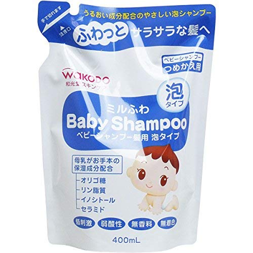 【商品区分:化粧品】 【成分】 水、ココアンホ酢酸Na、BG、塩化Na、ココイルアラニンNa、ココイルグルタミン酸K、ラフィノース、水添レシチン、イノシトール、セラミド3、ベタイン、シロキクラゲ多糖体、グリチルリチン酸2K、トコフェロール、ベヘニルアルコール、ポリクオタニウム-10、ステアロイル乳酸Na、ペンタステアリン酸ポリグリセリル-10、エチドロン酸、エチルヘキシルグリセリン、フェノキシエタノール 【使用方法】 ・髪と頭皮をぬらし適量を手に取り、頭をやさしくなでるように洗い、よくすすぎます。 【つめかえ方】 (1)注ぎ口部分をしっかり持ち、矢印の方向に線にそって切り取ってください。 (2)注ぎ口をボトルの口にしっかりと差し込み、ゆっくりと注ぎ入れてください。 ・ポンプが動かなくなったり、泡で出なくなる場合がありますので、必ず「ミルふわ ベビーシャンプー髪用 泡タイプ」のボトル容器につめかえてください。 ・必ず使い切ってからつめかえてください。 ・ボトル容器の内側と泡ポンプ部分は、洗わずにそのままご使用ください。万一洗ってしまった場合は、必ずよく乾かしてからつめかえてください。 ・一度に全量をつめかえてください。 ・他の製品や水を混ぜないでください。 ・パックを強く持って切ると、液が飛び出すことがありますのでご注意ください。 【注意】 ・傷やはれもの、湿しん等、異常のある部位には使用しないでください。 ・使用中、または使用後赤み、はれ、かゆみ、刺激等の異常があらわれた時は使用を中止し、皮ふ科専門医等にご相談されることをおすすめします。 ・目に入った時はすぐに洗い流してください。 ・極端に高温や低温の場所、直射日光の当たる場所に保管しないでください。 ・乳幼児の手の届かない所に保管してください。