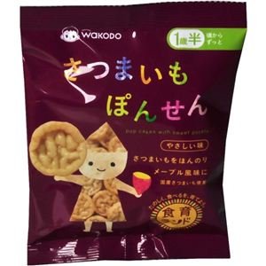 - ●「食育ランド さつまいもぽんせん8g 1歳半頃から」は、さつまいもでつくったほんのりメープル風味のぽんせんべい(ベビーフード)です。