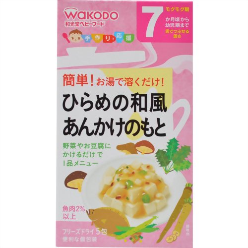 - ●「手作り応援 ひらめの和風あんかけのもと 5包 7ヶ月頃から」は、ひらめと国産の野菜を使用したあんかけのもと(ベビーフード)です。