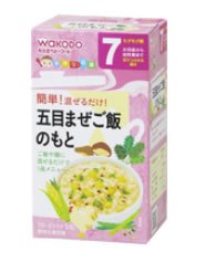 - ●「手作り応援 五目まぜご飯のもと 5包 7ヶ月頃から」は、国産の野菜と鶏肉を使用したまぜご飯のもと(ベビーフード)です。