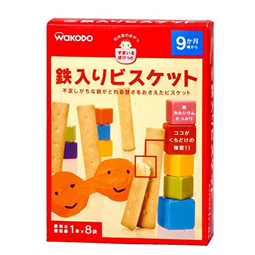 [和光堂のおやつ すまいるぽけっと 鉄入りビスケット 8包入り]は、不足しがちな手軽に鉄がとれる、やさしい甘さのさくさくビスケットです。
