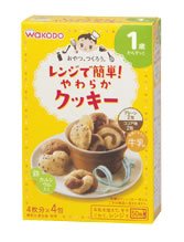 牛乳を加えて型に入れてレンジでチンするだけ、手軽においしいクッキーが作れるミックスです。お子さまに嬉しい鉄・カルシウム入り。1歳からのお子さまに。着色料・保存料不使用。便利な個包装タイプです(プレーン2包、ココア味2包入り)。