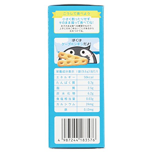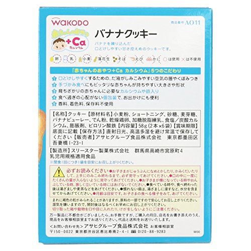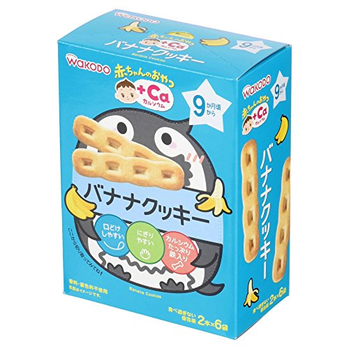●【商品説明】●「和光堂 赤ちゃんのおやつ +Caカルシウム バナナクッキー 9か月頃から 2本×6袋」は、お子さまの月齢に合った口どけ・固さ・味付けに配慮し、にぎりやすい、つまみやすい形状にしたママも安心してあげられる鉄やカルシウム入りのおやつシリーズです。●バナナを練り込んだ、口どけしやすい甘さ控えめのクッキーです。●賞味期限等の表記について西暦年/月/日の順番でパッケージに記載。●【お問い合わせ先】●販売元アサヒグループ食品株式会社 お客様相談室東京都渋谷区恵比寿南2-4-1フリーダイヤル:0120-88-9283●【原産国】●日本●【原材料名・栄養成分等】●品名・名称:クッキー●原材料名:小麦粉、ショートニング、砂糖、麦芽糖、バナナピューレー、でん粉、乾燥鶏卵、加糖脱脂練乳、食塩/炭酸カルシウム、膨脹剤、ピロリン酸鉄●栄養成分/1袋9.6g当たり:エネルギー50kcal、たんぱく質0.7g、脂質2.5g、炭水化物6.2g、食塩相当量0.03g、カルシウム24mg、鉄0.12mg●【保存方法】●直射日光を避け、高温多湿を避け常温で保存してください。●【...
