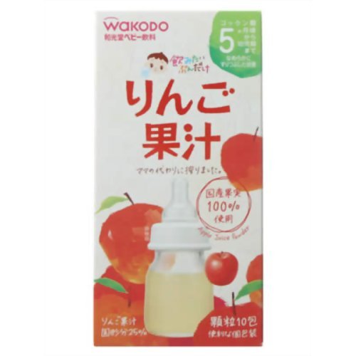 ●【商品説明】●「飲みたいぶんだけ りんご果汁 5g×10包 5か月頃から」は、国産りんごを使用したジュース(ベビー用)です。●果汁固形分25%。●そのままお飲みいただくことはもちろん、おいもに混ぜたり野菜を加えたりと、いろいろなメニュー作りにお役立てください。●5か月頃からお使いいただけます。●顆粒タイプ。●便利な個包装。●5か月頃から幼児期まで。●【お召し上がり方】●のみ方の目安離乳開始時からお使いいただけます。●最初は1-2さじから始め、慣れたら量・回数を次第に増やせます。●つくり方本品1包に対し、お湯または湯ざまし約40ml(大さじ3杯弱)を加えて溶かします。●飲みやすい温度か確認してからあげてください。●(大さじは15mlの計量スプーンです)●簡単アレンジメニュー*ゴックン期 かぶのりんご煮*(材料)りんご果汁1包、かぶ15g(つくり方)かぶをやわらかくゆで、すりつぶします。●40mlのお湯で溶いたりんご果汁で煮込みます。●*モグモグ期 お芋の茶巾しぼり*(材料)りんご果汁1包、さつまいも25g(つくり方)さつまいもをやわらかくゆで、つぶします...