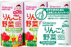 青森県産のりんごと、7種類の野菜(にんじん、トマト、アスパラガス、赤ピーマン、黄ピーマン、かぼちゃ、ほうれんそう)をおいしくブレンドしました。香料、食塩、砂糖無添加です。 JANコード:4987244150455
