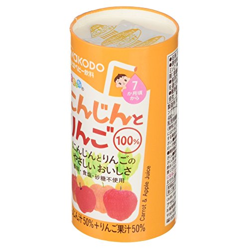 にんじんとりんごのやさしいおいしさ。香料・食塩・砂糖不使用。にんじん汁50%・りんご果汁50%。にんじんとりんごを50%ずつおいしくブレンドし、やさしい甘みのある飲みものに仕上げました。
