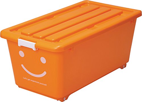 カラフルなフタ付き収納ケース。キャスター付き。積み重ねOK。