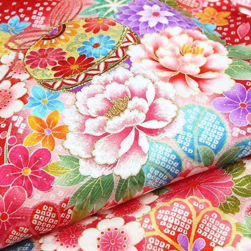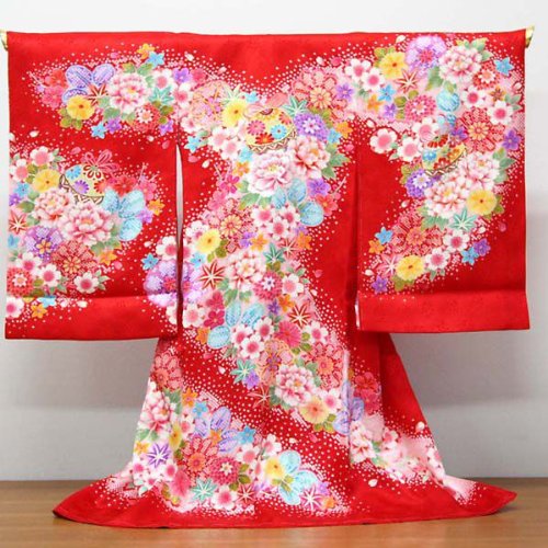 - 赤地系・鈴に絞り調花柄です。