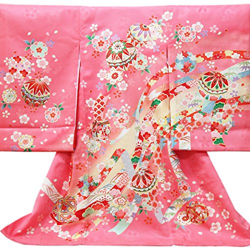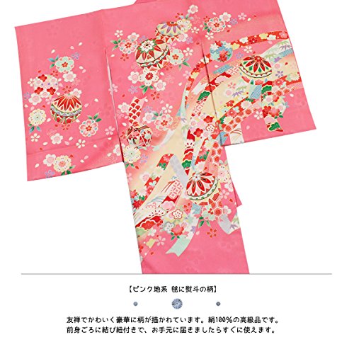 【お宮参り着物】【ピンク地系 毬にのしの柄】女の子 友禅 正絹【風呂敷プレゼント/ギフト包装】