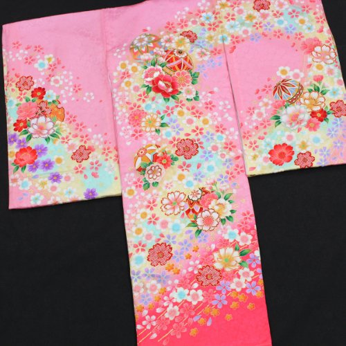 【お宮参り着物】 【ピンク地系 毬に花柄】 女の子 正絹 友禅 刺繍【風呂敷プレゼント/ギフト対応】